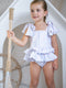 Traje de baño de niña diseñado con tela estampada, olan en cintura y moños en hombro que le permite adecuarse al cuerpo de tu hija por varios años. Esta pieza viene forrada y sin costura lo que le da mayor comodidad a tu chiquita a la hora de usarla. Se puede usar como traje de baño o ropa. Combínalo con gorro o pareo.