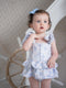 Traje de baño de niña diseñado con tela estampada, olanes en cintura y moños en hombro que le permite adecuarse al cuerpo de tu hija por varios años. Esta pieza viene forrada y sin costura lo que le da mayor comodidad a tu chiquita a la hora de usarla. Se puede usar como traje de baño o ropa. Combínalo con gorro o pareo.
